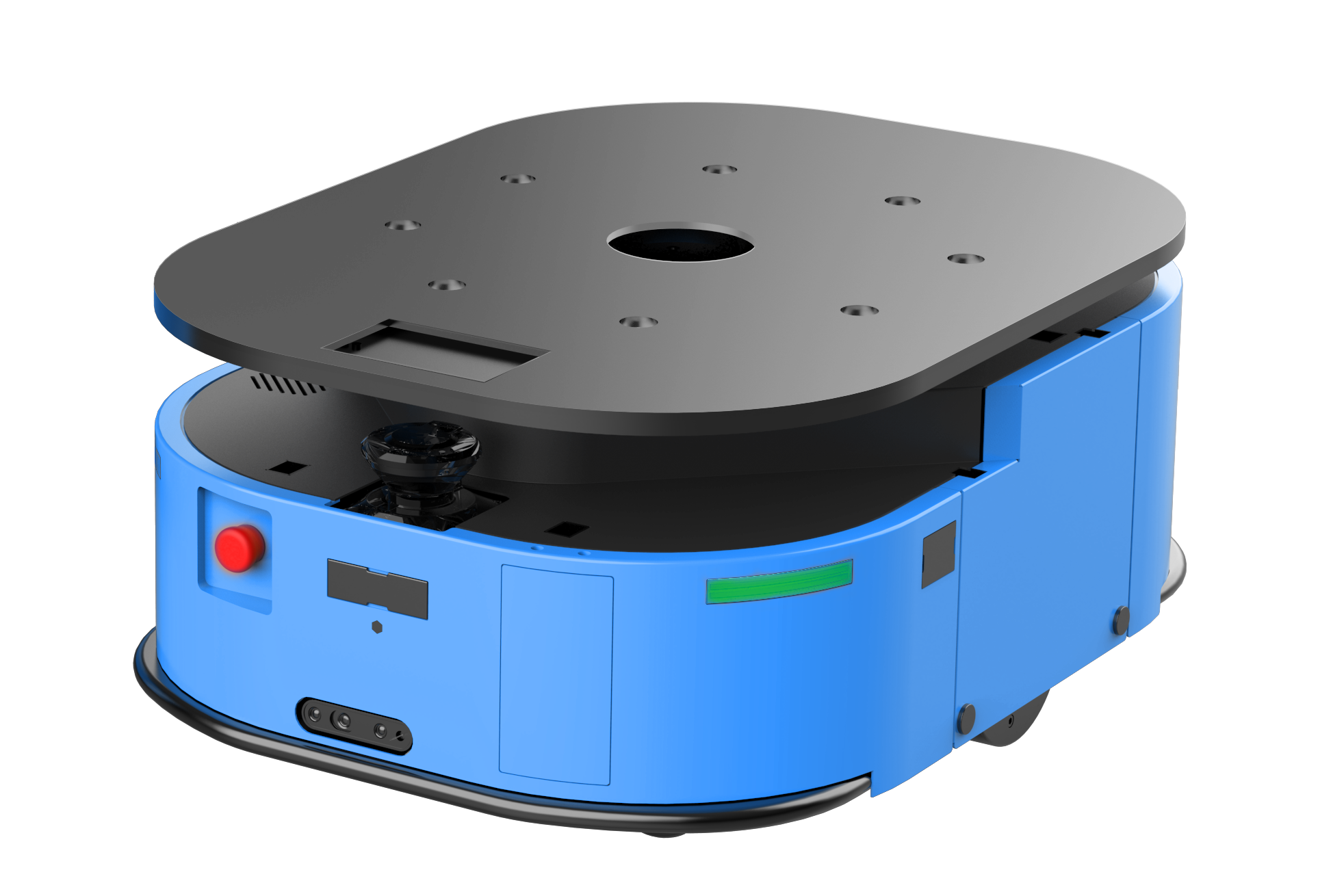 車身低矮,可以進入低矮的料架地下牽引。潛伏牽引并且雙向運行可以使轉彎半徑縮小,占地面積小。 驅動單元一鍵電動升降方便維護。最多可以指定1024個站點。 激光傳感器安全防護到位